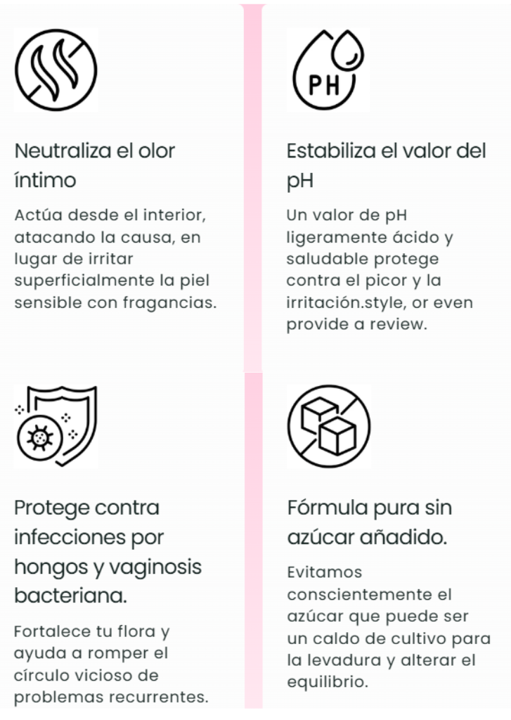 Un sistema inmunitario débil puede debilitar la salud femenina. Nuestras gomitas contienen probióticos que fortalecen las defensas naturales del cuerpo y ayudan a combatir las bacterias dañinas. Esta es una protección diaria a base de plantas sin los efectos secundarios de los productos químicos agresivos.